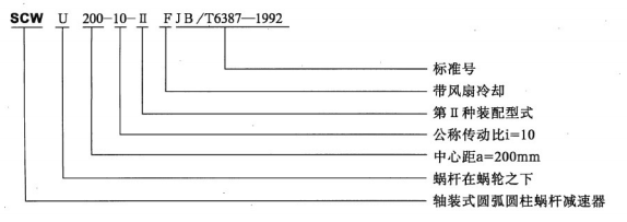 SCW系列軸裝式圓弧圓柱蝸桿減速機(jī)代號(hào)見(jiàn)下表